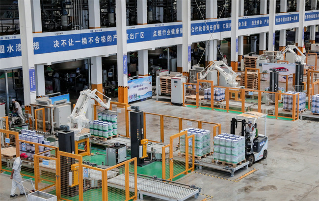 (河北日?qǐng)?bào)/□記者 寇國(guó)瑩)近日,走進(jìn)位于保定市徐水區(qū)的河北晨陽(yáng)工貿(mào)集團(tuán)有限公司,只見寬敞整潔的智能化車間里,全自動(dòng)機(jī)械臂上下翻飛,一桶桶水漆正在被源源不斷地生產(chǎn)出來(lái)。