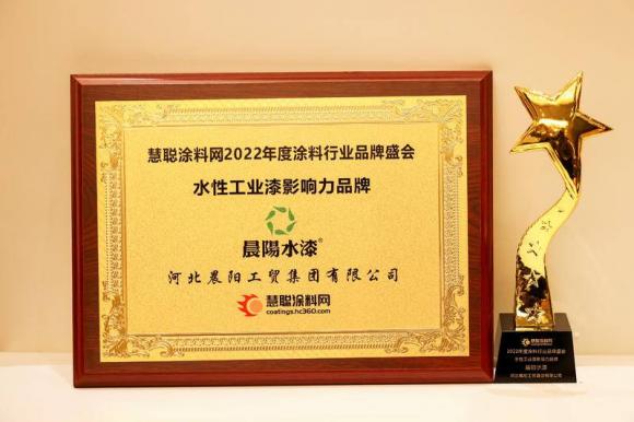 晨陽水漆榮獲“水性工業漆影響力品牌”