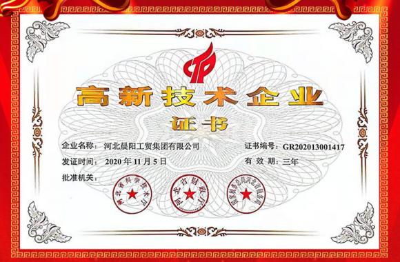 河北晨陽工貿集團再次榮獲“高新技術企業”認證